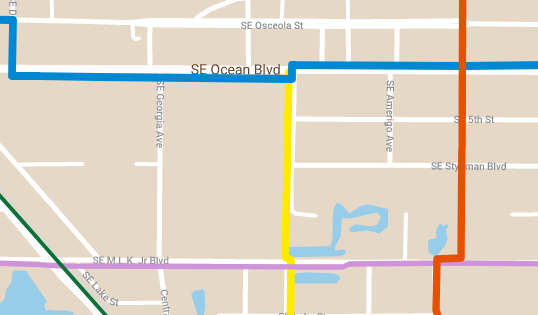 Starting at Ocean adjacent to the old High School, near Stuart Middle School, and passing beside the new Boys and Girls Club near MLK.