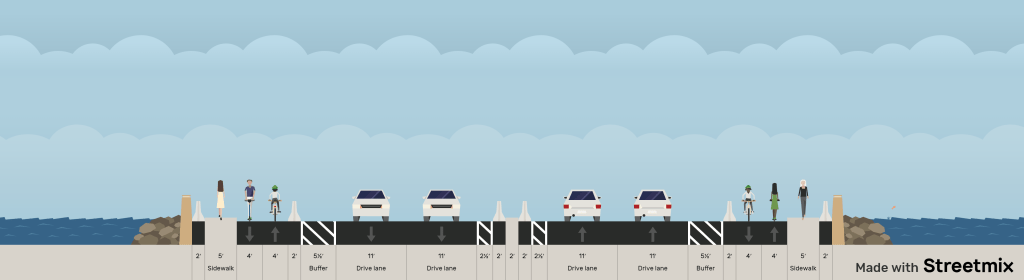 From there, the sidewalk on the South side of Ocean could be widened to a multi-use trail, terminating at Stuart Beach. This would provide an quick-build low-cost and safe route for thousands of our region’s residents and visitors to get from home to their place work or play.