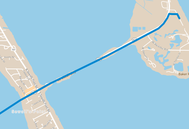 As the trail reaches the Sewells Point bridge, excess shoulder area can be reallocated to enhance safety for all road users. This is in compliance with FDOT’s modern best practice and should be implemented immediately to provide better physical protections for both people walking and biking. In addition, it should help reduce dangerous speeding on the bridge.