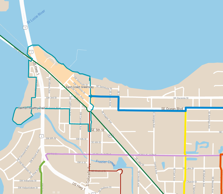 The trail will begin on Osceola St downtown and continue in open space available along Ocean Blvd in Memorial Park, in front of the Middle School, and at the old High School.